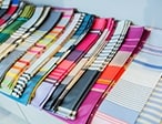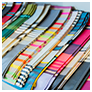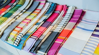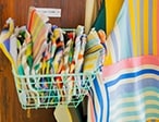 バスク地方といえば、ベレー帽とボーダーをデザインのベースとしたバスク織。服だけでなく、コースター、鍋つかみ、ポーチなどの小物も可愛い。