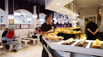 フィンガーフードとして世界中で親しまれているピンチョス発祥の地。100以上のバルが軒を連ねる旧市街は、美食の街としても有名。牛肉や魚介など、さまざまな小皿料理が楽しめます。 -