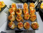 ピンチョスが始まったとされる店の1つ。ピンチョス大会では、いくつもの賞を受賞しており、白い清潔感のある店内には、無数のピンチョスが並んでいます。バスクで有名な微発泡ワイン「チャコリ」と共に。 -