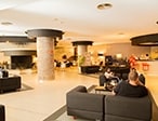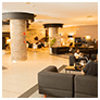 入り口に目立つカフェや、エントランスの奥にあるグランドピアノやビリヤード台の置かれたゆったりできるラウンジが特徴。中庭にあるプールもシーズン中は観光客で賑わいます。 -