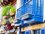 旧市街の赤や緑などバスクフラッグの色をなぞるような建物のデザインの統一感が美しい街並み。カラフルな街並みは、どこで撮っても活き活きとしたフォトスポットになります。 -