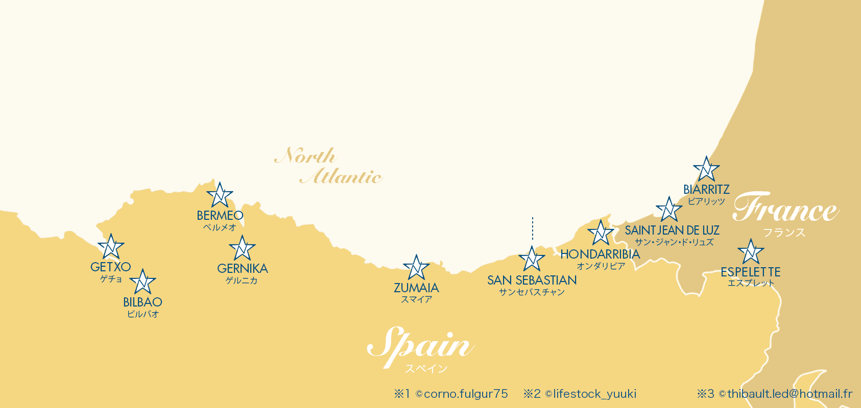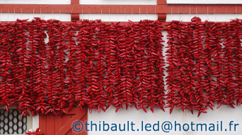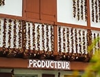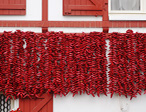 唐辛子の産地として有名なエスプレットの街並みは、赤と白で塗られた家々がまるで唐辛子のよう。お店や民家の窓から唐辛子が吊るされた光景が有名です。 -
