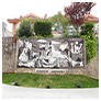 ゲルニカの街にある、パブロ・ピカソがドイツ空軍のコンドル軍団によって爆撃を受けたゲルニカの街を主題として1937年に描いた絵画の実物大タペストリー。 -