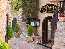 エズ村にあるホテルも併設されたレストラン。パノラミックなテラスで地中海を一望しながらの食事は、ほかのどこでも味わえないでしょう。夕陽に輝くプロヴァンスのロゼがピッタリの場所。