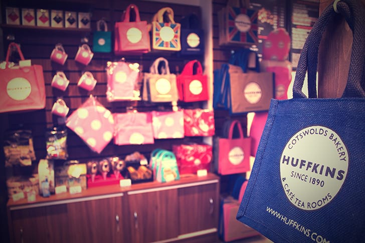 ハフキンス・ショップ19世紀創業の、コッツウォルズ地方に5軒の支店を持つベーカリー&ティールーム。バーフォード店のショップは、ユニオンジャックのデザインがキュートな人気のエコバッグやオリジナルの紅茶、ジャムなどお土産の宝庫です。
