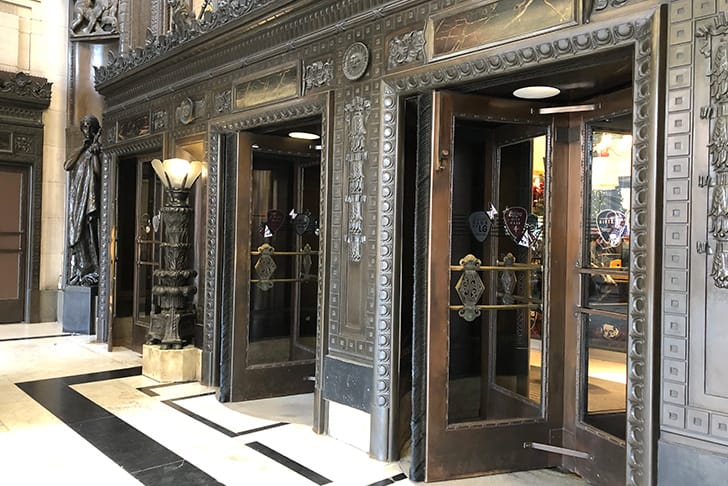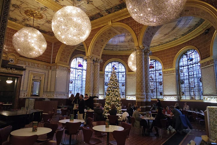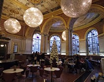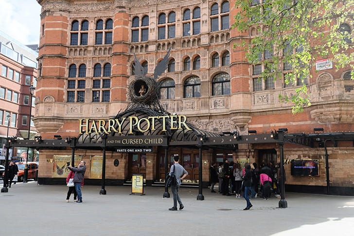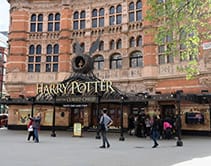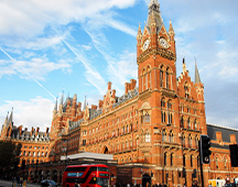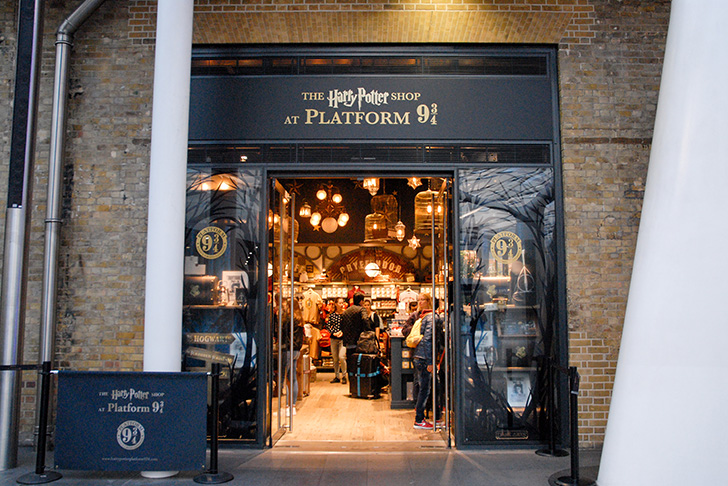キングス・クロス駅コンコース内では、オフィシャルショップに隣接する「9 3/4番線」の表示と、壁に半分吸い込まれたカートと共に記念撮影ができます。同じく映画に登場した、お隣のセント・パンクラス駅の重厚な外観も必見。