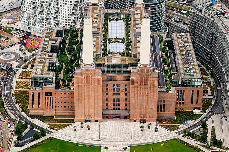 バタシー発電所火力発電所を再開発し、2023年10月にオープンした複合商業施設。施設内には、109メートルの高さまでエレベーターで昇り、ロンドンの景色を360度見渡せる新しい展望スポット「LIFT109」があります。 -