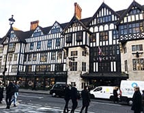 リバティ・プリントはロンドンの老舗百貨店「リバティ・ロンドン」が製作・販売する花柄を基調とする生地。服や雑貨などが人気です。百貨店でお馴染みの1階は化粧品売り場というスタイルはセルフリッジが発祥といわれ、人気デパートです。