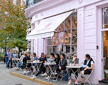 ビー・ベイカリースタイリッシュなイラストやお洒落なスイーツが人気のティーサロン。ベジタリアンやグルテンフリーなど、女性に優しいメニューも豊富。二階建てバスや、テムズ川クルーズで楽しめるアフタヌーンティーツアーも充実しています。