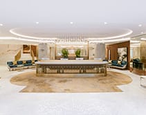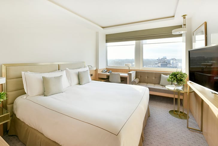 ロイヤルランカスターロンドン地下鉄ランカスターゲート駅 (Central Line) に隣接。目の前にハイドパークが広がり「2018年に訪れるべき世界の新装ホテル14選」にリストアップされた大型高層ホテル。落ち着きのある内装です。 -