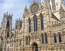 ヨーク大聖堂1220年から250年の歳月をかけて建てられた、イギリス最大のゴシック建築。世界最大のステンドグラス(東大窓)、現存する世界最大の中世のステンドグラス(北翼廊)、ハート型のバラ窓など、荘厳な美しさに心を奪われます。 -