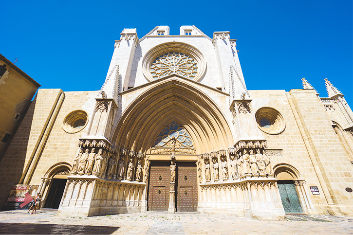 タラゴナ大聖堂この大聖堂を始め、タラゴナ周辺に残された建築物は考古遺産群として世界遺産に登録されています。イスラム教の影響も受け、様々な様式で建築されました。正面の「使途の門」の玄関枠を囲む12使途の彫刻は圧巻です。 -
