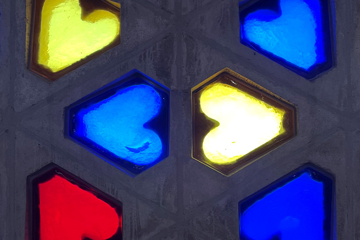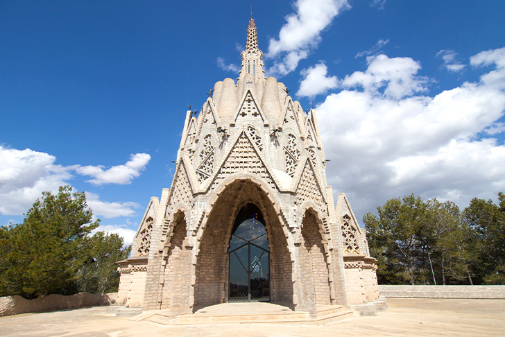 モンフェリのモンセラート教会この教会は、ガウディの弟子であるジュゼップ・ジュジョールが、カタルーニャ人のメッカであるモンセラを再現して1925年に最初の石を置き、1999年に村人の手によって完成させられました。ハート型のステンドグラスがかわいらしい、こぢんまりとした教会です(※平時は閉館しています) -