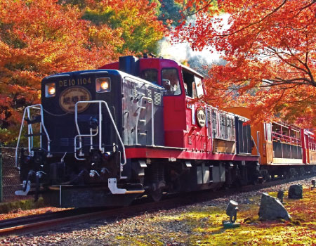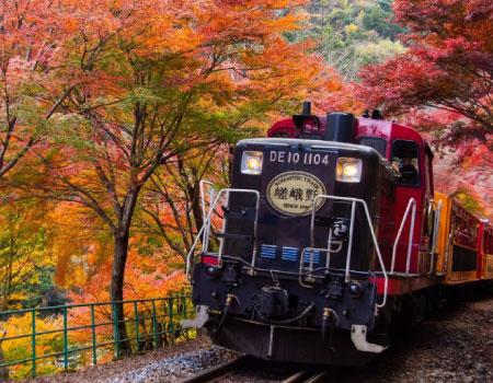 The Sagano Romantic Train is a wonderful experience to enjoy the beautiful fall colors in the gorge.It takes around 25-minutes, 7.3 km train ride lets enjoy the beautiful views. -