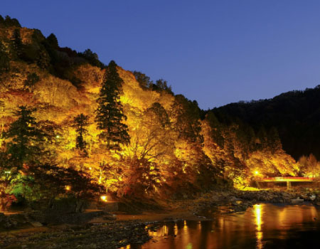 At night, you can also meet the mysterious and beautiful autumn leaves that are lit up. -
