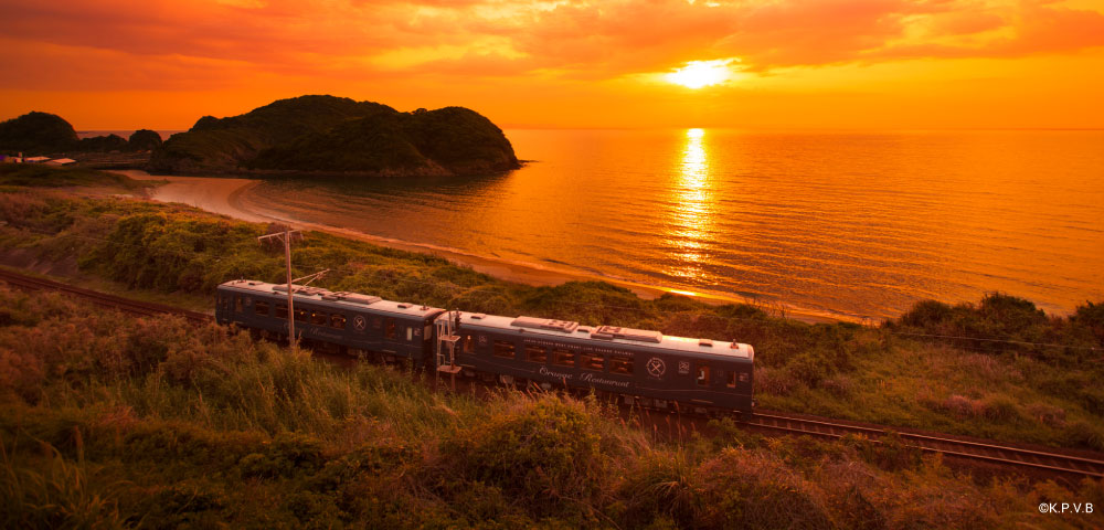 To see the scenic west coast of Kagoshima, take the 「Hisatsu-Orange Railway」, a superb train that runs