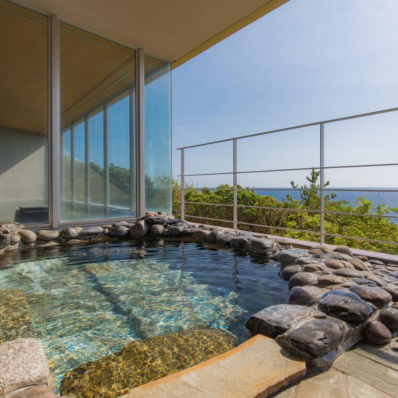 Enjoy a luxurious evening with a dinner prepared by a private chef, an open-air bath, and a