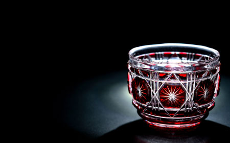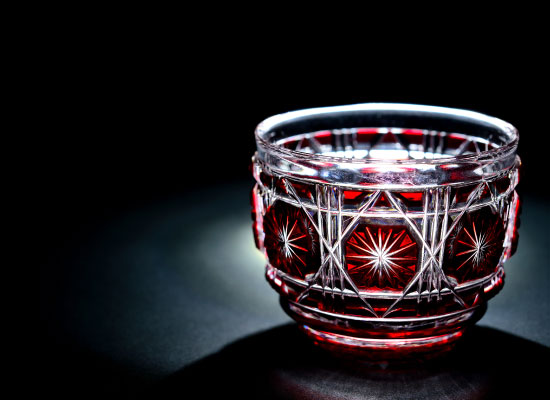 It is a beautiful cut glass that is unprecedented in the world, with a delicate cut pattern engraved on the colored glass that is made by covering transparent glass with colored one.
