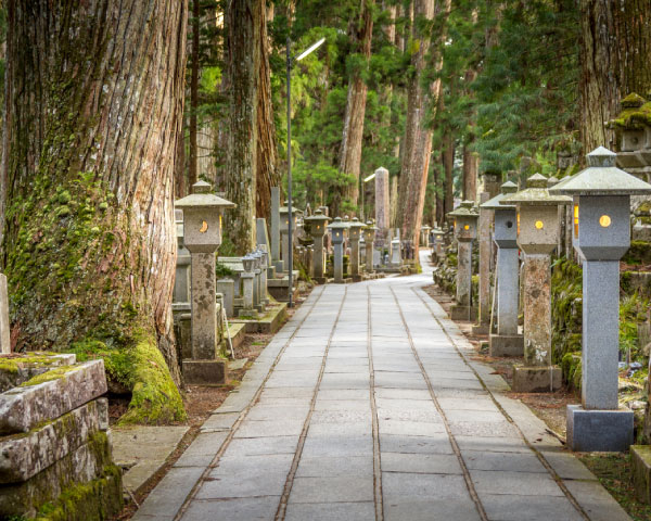 The unique, serene, and mystical scene of Koyasan, covered with large cedar trees over 1,000 years old, continues to captivate the hearts of visitors to Japan.