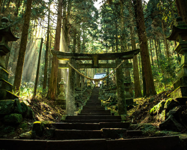 - The long Kumano Kodo is dotted with original landscapes that can be called the spiritual home of the Japanese people, including tree-lined avenues of lush green forests, Dosojin (guardian deities of the road), remote farming villages, and spectacular views of mountains and terraced rice paddies filled with a sea of clouds.