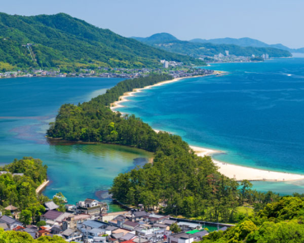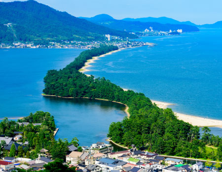 - 天橋立是一個橫跨宮津灣入海口的沙洲。從山上眺望,天橋立沙洲在日文意為「天堂之橋」,看起來像是天堂與地球之間的通道。