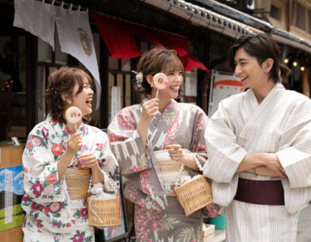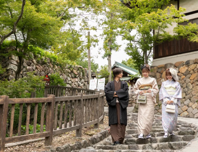 與這份氛圍完美相襯的,正是身著美麗和服的人們所構成的雅緻景象。漫步城中,您可以優雅地擺動和服,盡情享受那喚起昔日情懷的動人景色。在指定的拍照點,您身著和服的身影將與街景完美融合,讓您捕捉到引人入勝的精彩照片。