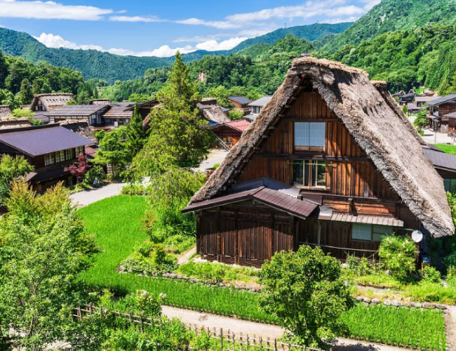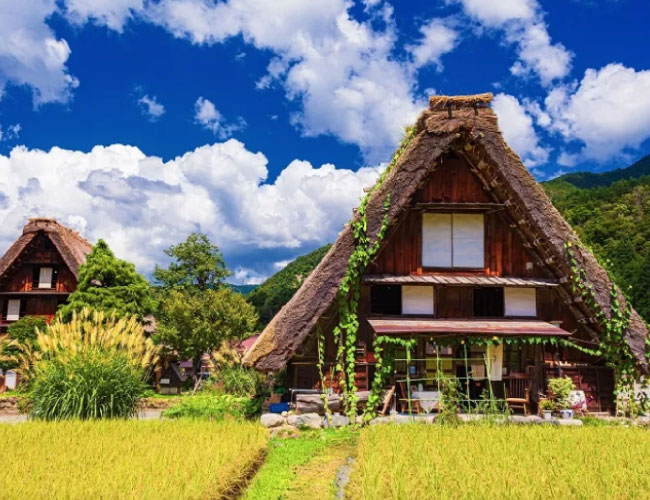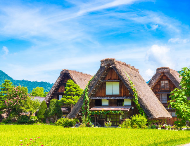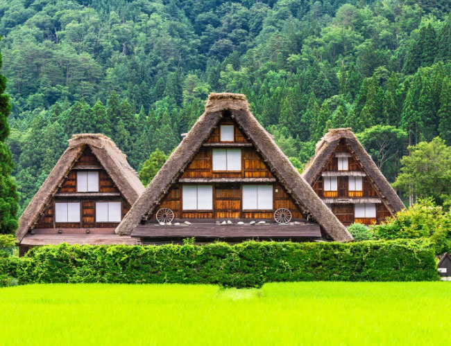 合掌造或茅草屋頂的房屋旨在抵禦冬季的嚴寒大雪,是日本鄉村的象徵也是人們與自然和諧相處的智慧。