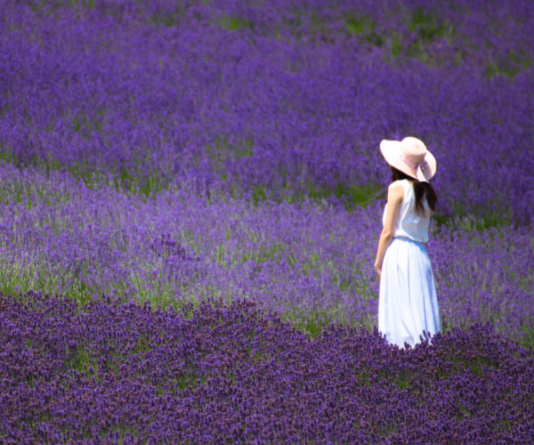 - 山丘上鋪滿了薰衣草田,染成一片迷人的淺紫色花海,包裹著淡淡的薰衣草香味。