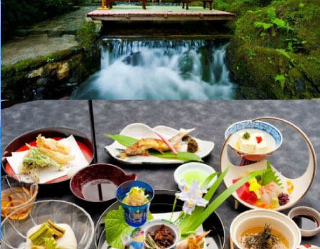 潺潺流水及綠意環繞,品嚐割烹料理的極致體驗,在涼爽中留下難忘的回憶。