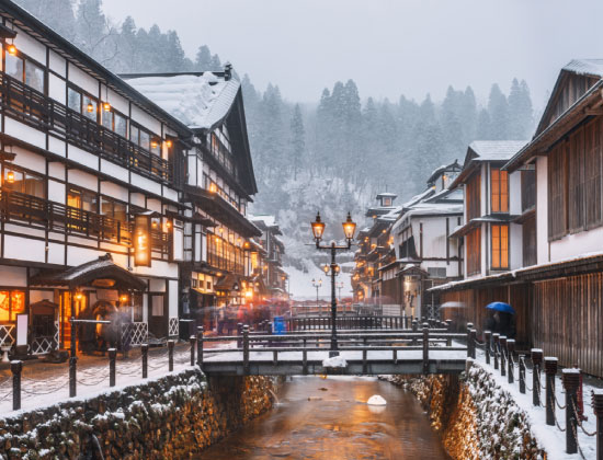 Ginzan OnsenGinzan Onsen, located in Yamagata's countryside, was a thriving silver mining town in the 17th century, hence its name.