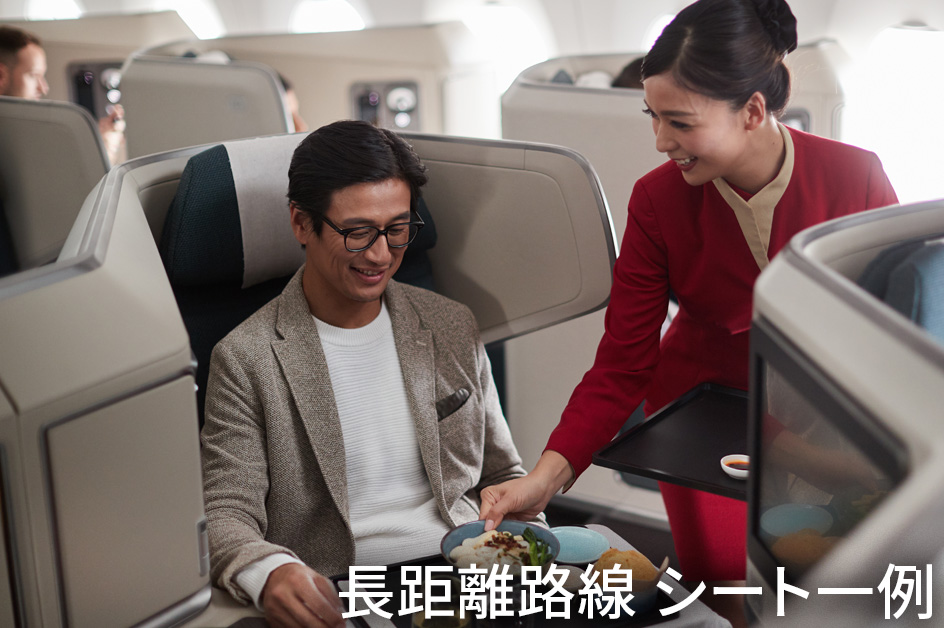 ゆったりとしたシートや洗練された食事など快適な空の旅を体験。長距離路線ではフルフラットシートや肌触りの良い寝具、ラグジュアリーなアメニティなど長いフライト時間もお楽しみいただけるサービスをご提供いたします。(出発日や路線により使用機材は異なります)