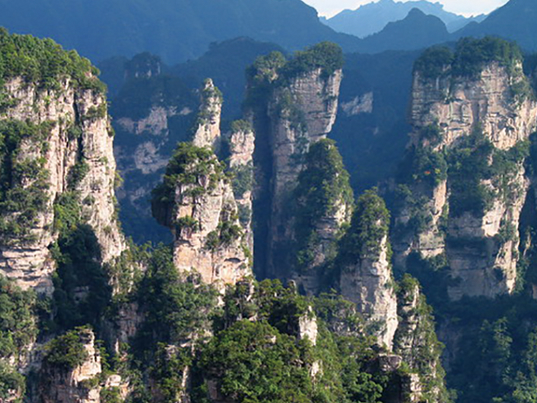 総面積は約264㎢にも及び、高さが200mを超える岩の柱が3100本以上も林立する岩山の世界は、一見荒涼であるが、豊かな森林が広がり様々な生態系を育んでいることから、「仙境の縮小版」と呼ばれることもある。
