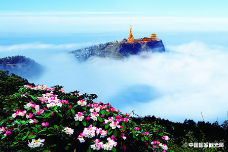 中国四大仏教名山の一つに数えられる峨眉山。1996年に楽山大仏と合わせて世界遺 産に登録された聖山は、最高峰3099mを中心とした景勝区でもある。豊かな自然や山中 にある宗教的な建築物が造られるようになったのは後漢時代になってからで、その後、途 絶えることなく、建造、修復行われた。現在は、報国寺、万年寺、伏虎寺、金頂等が峨眉 山の観光名所となっている。頂上付近で見ることができる雲海は、より一層この聖山を神秘 的に見せることだろう。