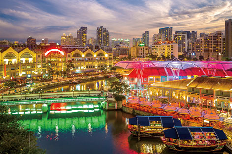 マリーナ湾に向かって市内を流れる川をクルージング。ライトアップされ、うっとりするような夜景をお楽しみいただけます。