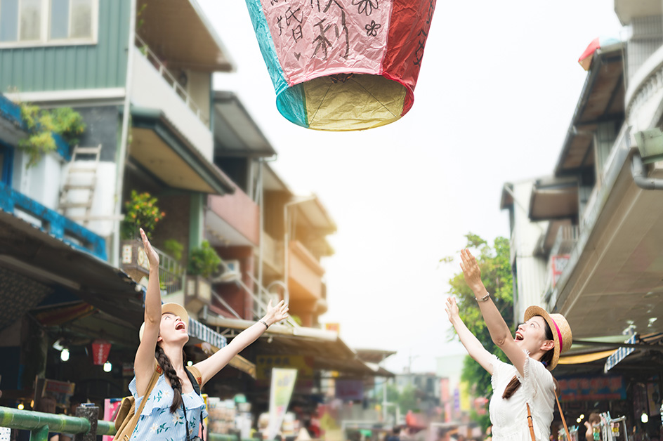 線路の上で願い事を書いたランタン飛ばしで有名な「十分老街」。線路沿いには土産物屋が並び、ほかにも「台湾のナイアガラ」と呼ばれる十分瀑布など、ランタンだけではない魅力がたっぷり。