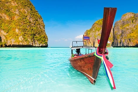 プーケット島から高速艇で約3時間の位置にある珊瑚礁に囲まれた秘島。映画の舞台にもなったマヤ・ベイは絶壁に囲まれたロマンティックな楽園です。