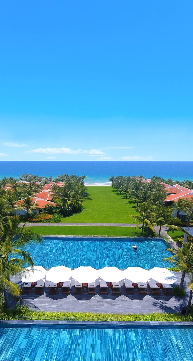 美しい緑と青い海に包まれた大人の隠れ家 - カムランエリアに静かに佇む、美しい芝生と、緑豊かな庭園、美しい海、白亜の砂浜が魅力のリゾート。裸足で歩きたくなるような驚くほど柔らかな芝生を越えた先には、きめ細やかなパウダーサンドのビーチが広がります。3つの趣の異なるプールも魅力の一つ。忙しく過ごす日々のストレスから束の間解放され、木々の緑と、青い海に心から癒される休日をお過ごしいただけます。