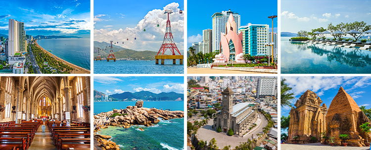 ステンドグラスが美しいニャチャン教会、市内を見守るように建つロンソン寺、落ちそうな岩が有名なホンチョン岬、古代チャンバ王国の遺跡ボーナカル遺跡を効率よく観光。