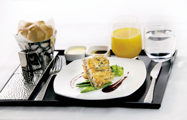 ご搭乗時にお好みのドリンクで歓迎いたします。ご搭乗後、お好きなタイミングで幅広いアラカルトメニューからお食事をお選びください。