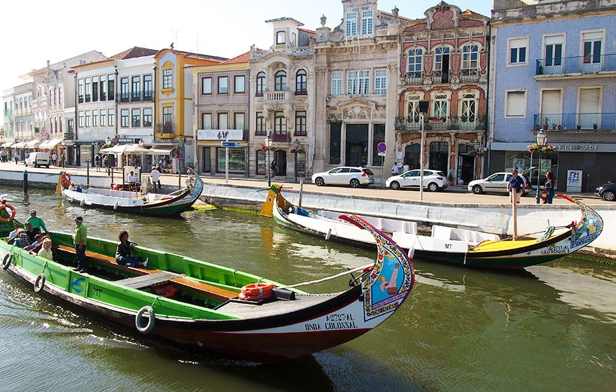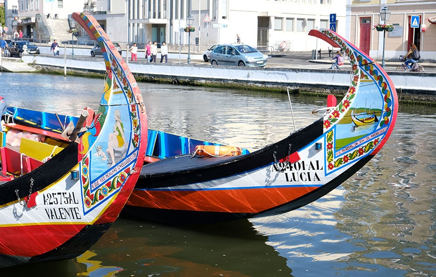 運河沿いのアールヌーボーな建物を背景に、静かに往来する船「モリセイロ」のカラフルな舳先を見ていると、絵本の世界に迷い込んだような気分に。