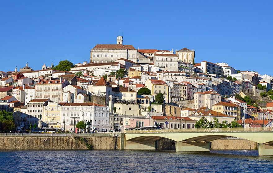 丘の上に建つ1290年創立のコインブラ大学がシンボル。現在も2万人以上の学生が学んでいて、街中で黒いマントを来た学生を見かける事も。