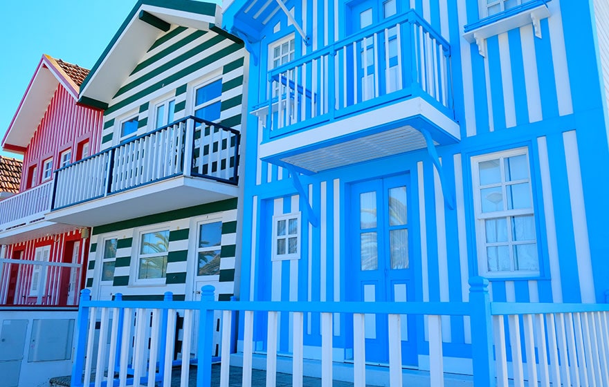 海沿いに色とりどりのストライプの家々が建ち並ぶ「パジャマシティ」。写真映えスポットとしてここ数年で注目度がUP!