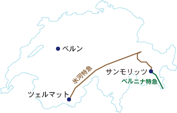 スイスを代表する山岳鉄道・氷河特急がツェルマット~サンモリッツを約8時間かけて走ります。時速35kmとゆっくりしたペースで美しい渓谷や湖、牧歌的な風景の中を進むので存分にスイスの絶景をお楽しみいただけます。