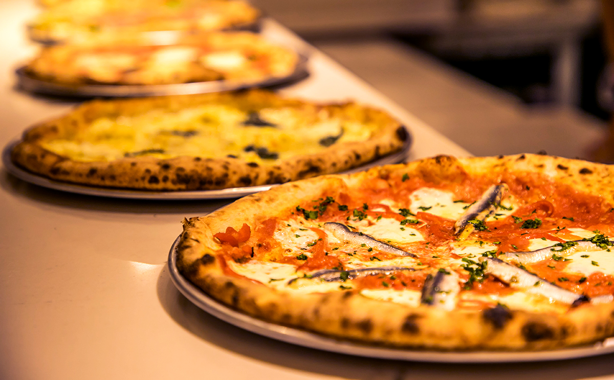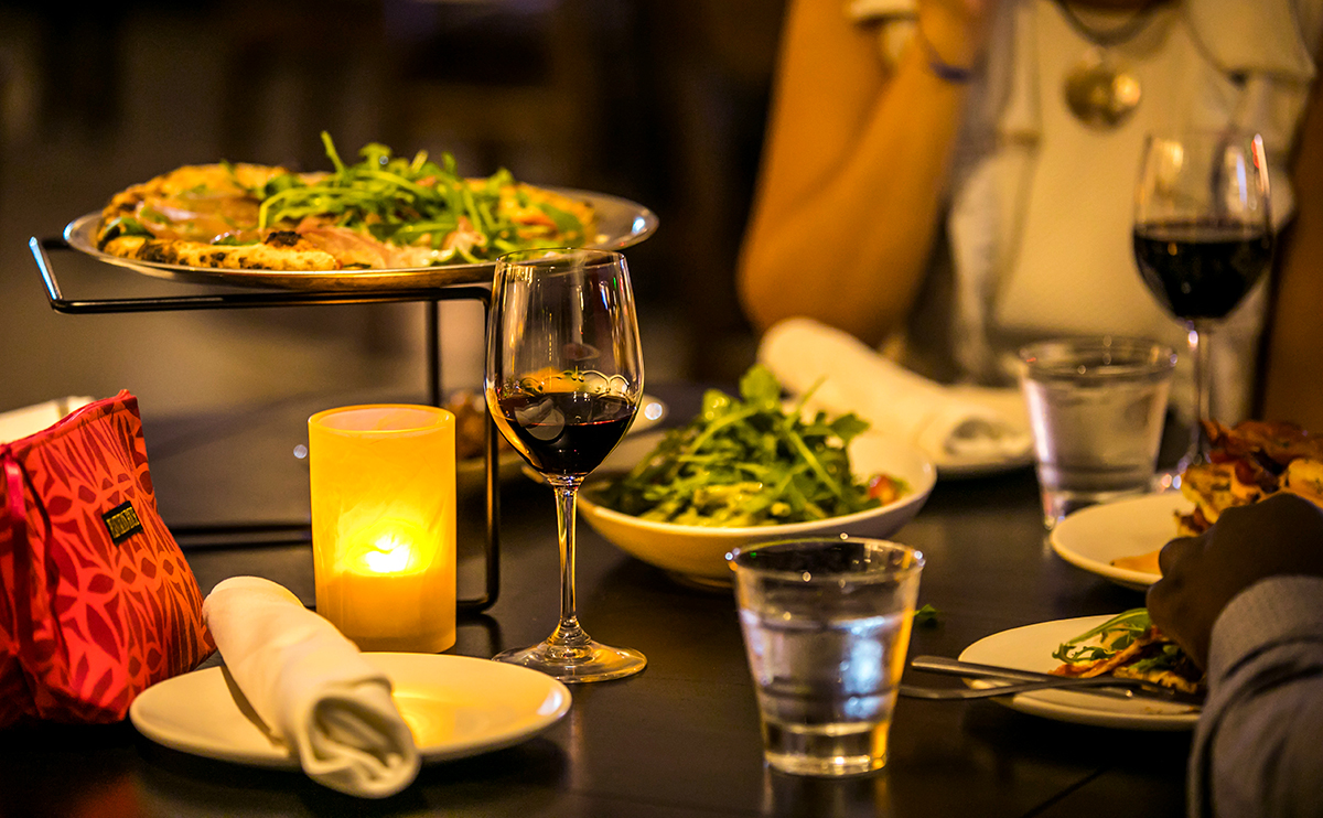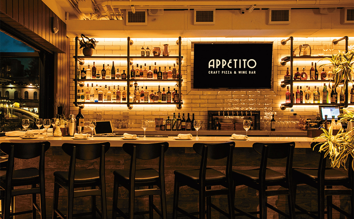 デイタイムはサンドウィッチなどのテイクアウトも可能。こだわりの本格ナポリピザや100種類以上の上質なワインが楽しめるオールデイダイニング。