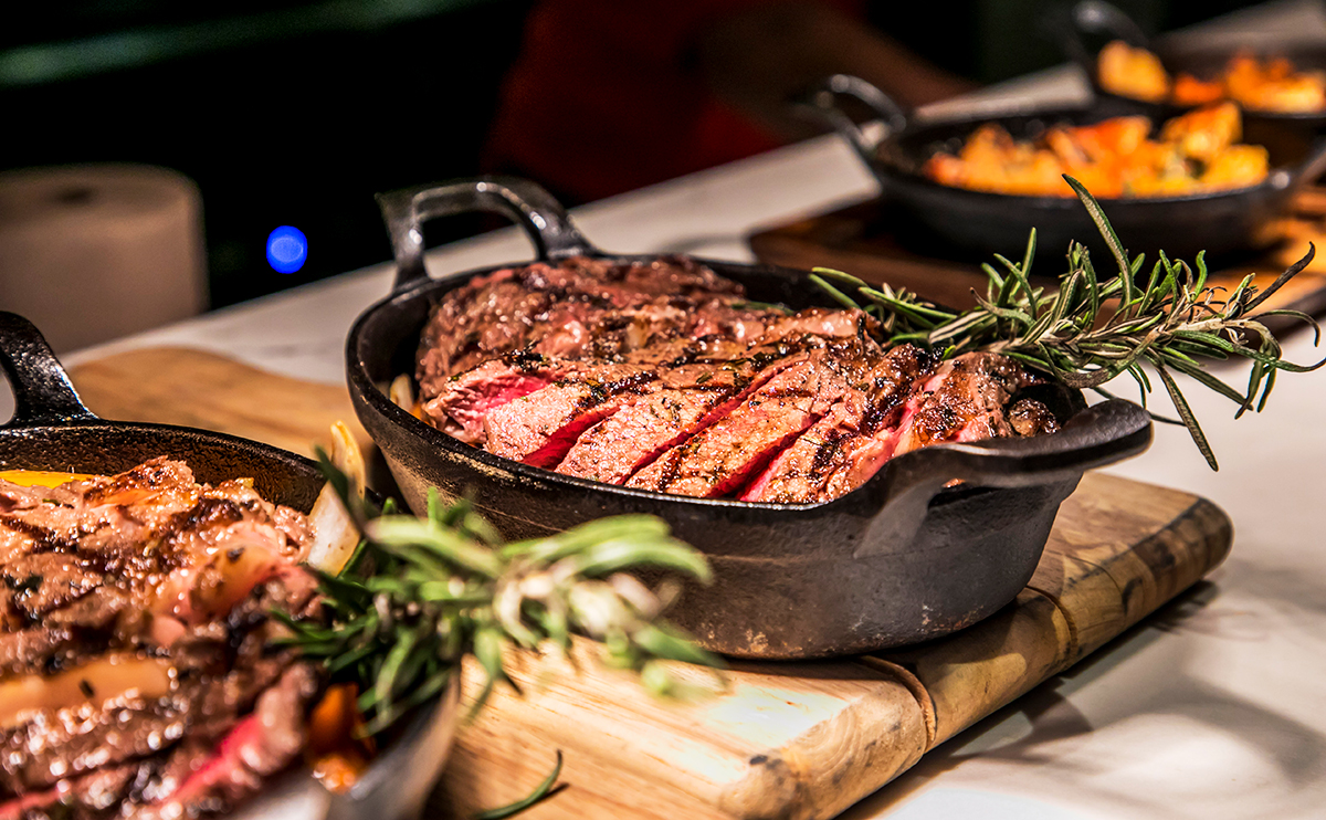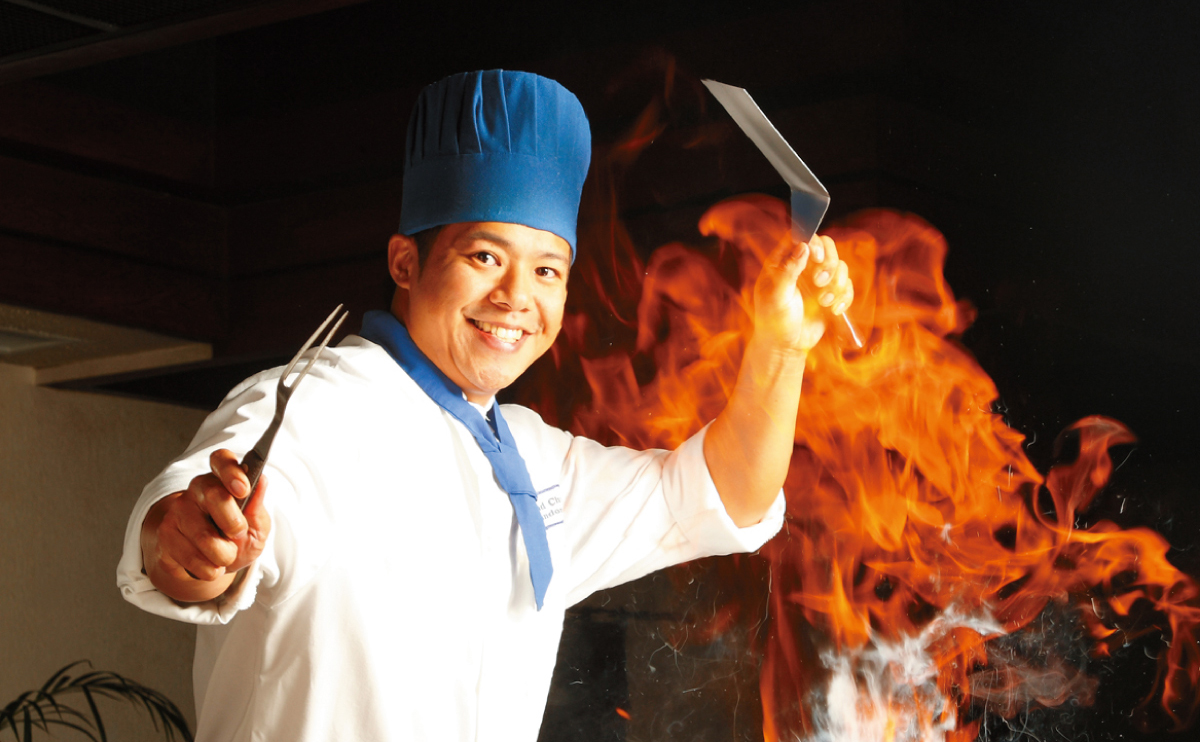 料理はもちろん、ゲストの目の前で繰り広げられるシェフの豪快なパフォーマンスも魅力の鉄板焼レストラン。