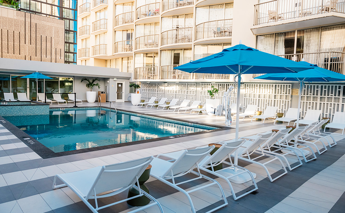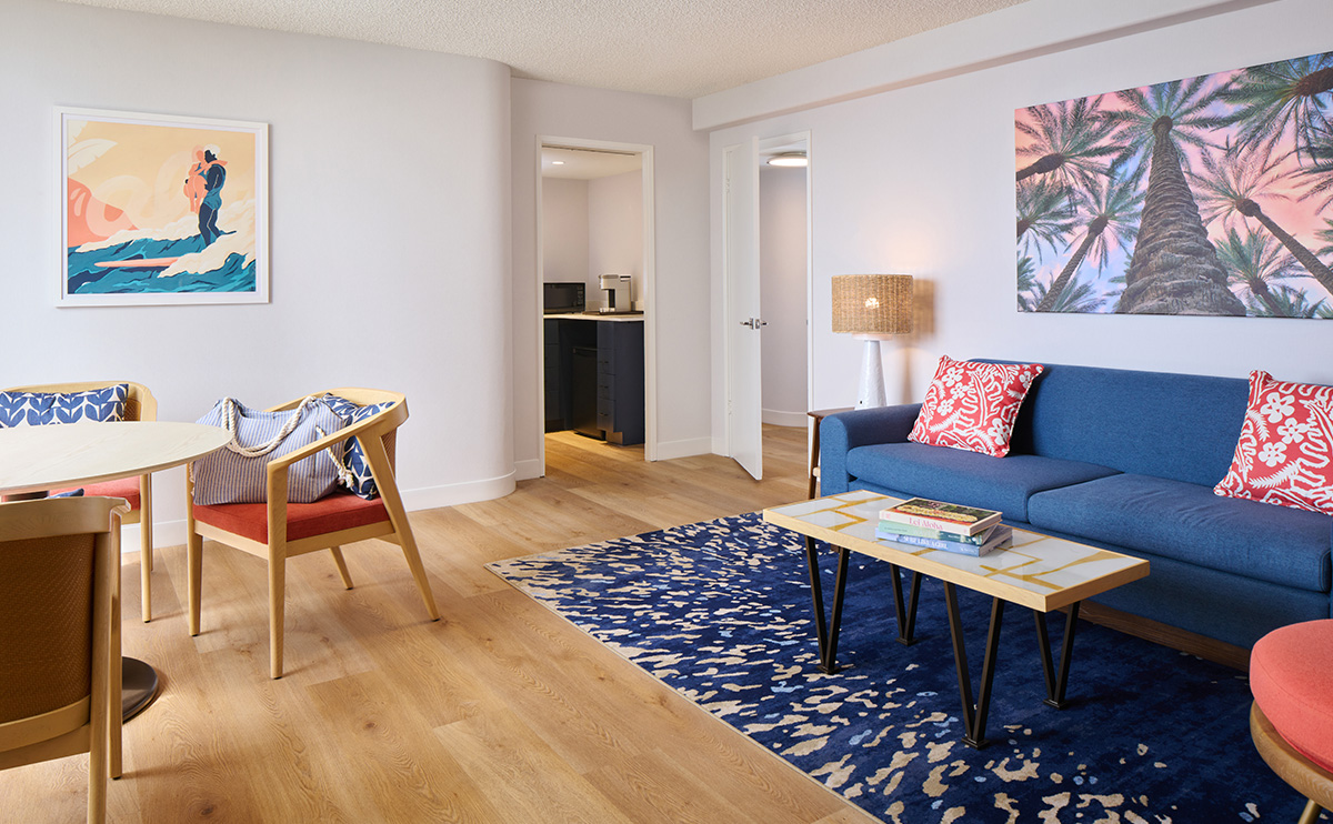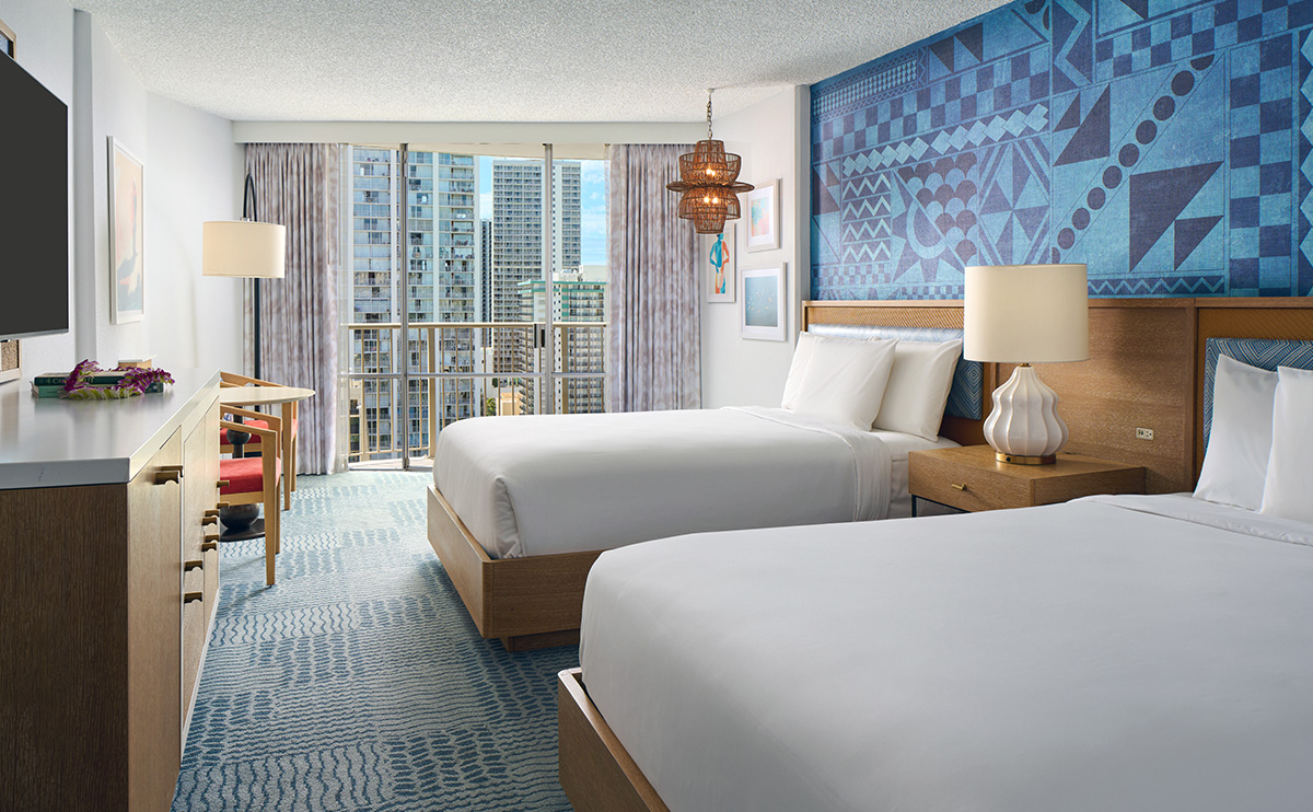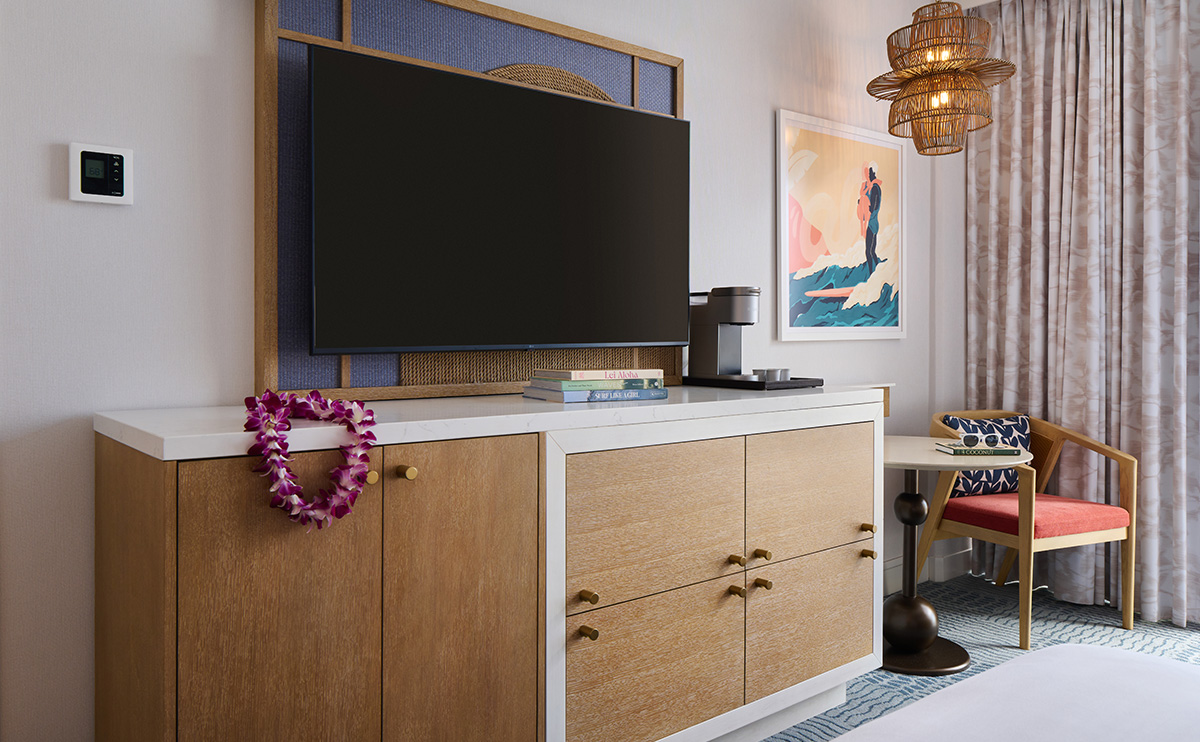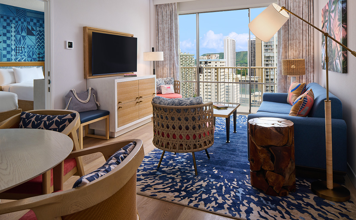ワイキキの中心に立つロケーションは、どこへ行くにも便利。ホテル内には、ワイキキの日本食の名店「田中オブ東京」など、レストランやコーヒーショップがあります。そのほか、ギフトショップ、フィットネスセンター、会議室など、ホテルに必要な施設を備えています。通りを挟んだ向かい側には、2023年1月オープン「ワイキキマーケット」、隣にはインターナショナル・マーケットプレイスがあります。