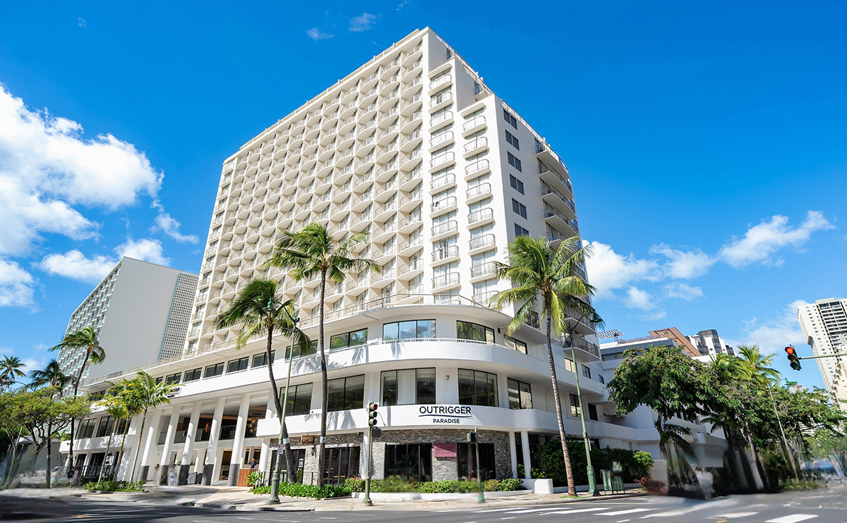 「アウトリガー ワイキキ パラダイス ホテル」にご宿泊のお客様は、1泊1室あたり、27ドル(税別)のデイリー・リゾート・チャージのお支払いが必要です。チェックアウトの際現地にてご精算ください。