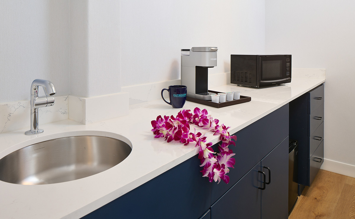 ウェットバー(流し台)や電子レンジ付きのお部屋はご家族での滞在に最適