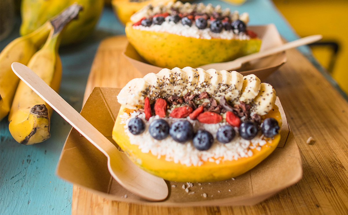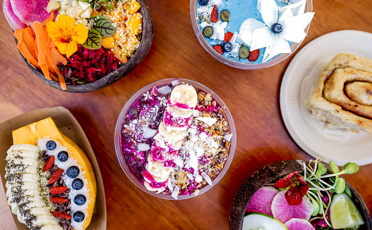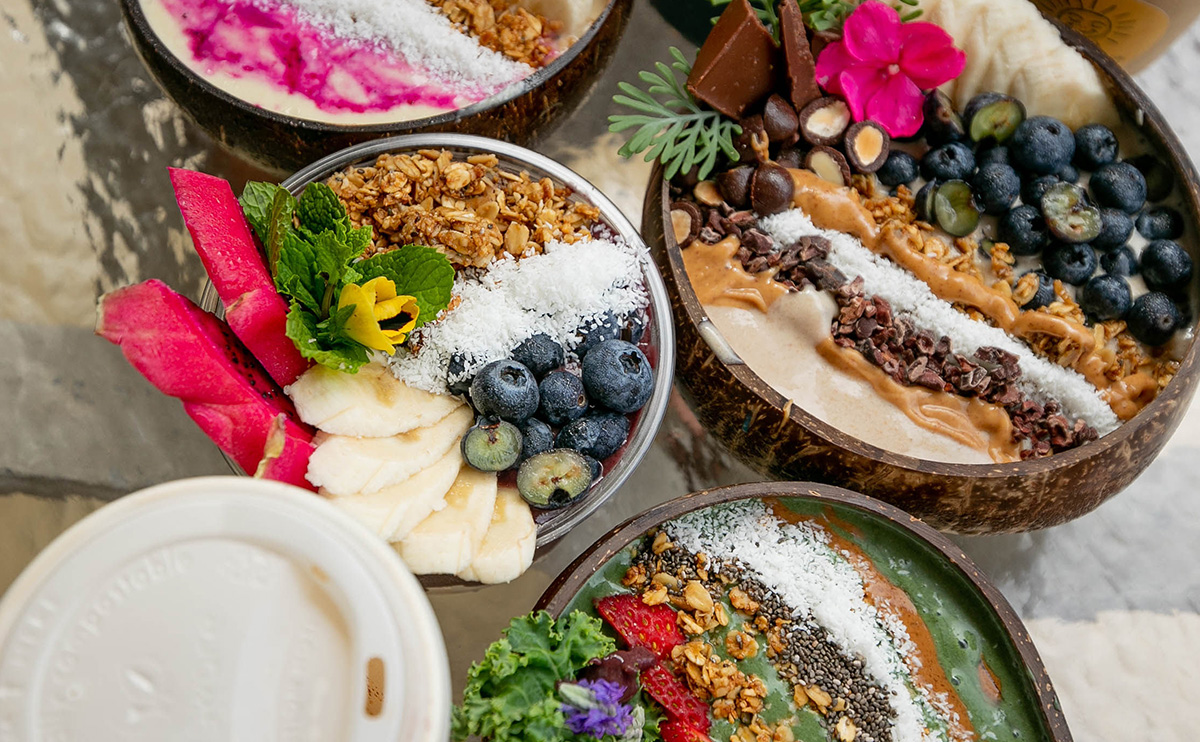 オーガニックコーヒー、スムージー、コールドプレスジュース、アボカドトースト、スーパーフードスムージーボウルなど、ヘルシーフードが人気。