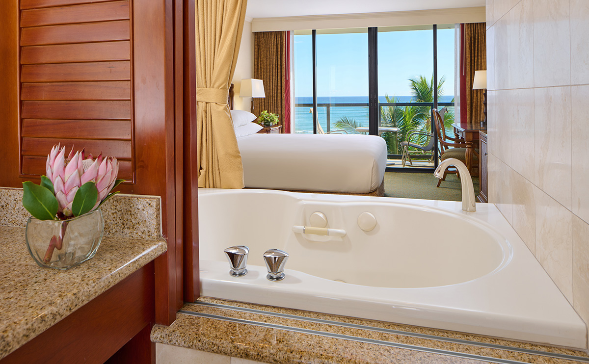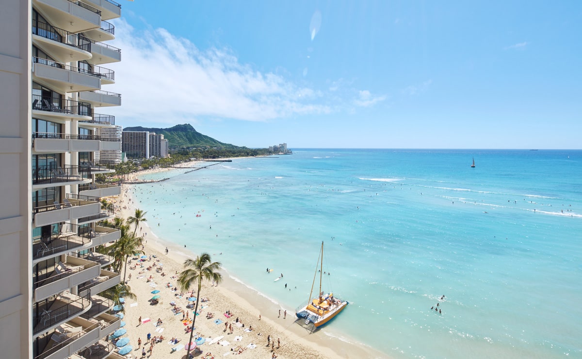 ワイキキで最高のロケーションを誇る、デラックスなビーチフロントリゾート。カラカウア通りに面しており、主要なショッピング・エリアも近く、お買物に便利。さらに、プールデッキからも海の眺めが堪能できるようにビーチとプールの境目がガラス張りになっています。お客様専用の「ボエジャー47クラブ・ラウンジ」もオープン。ラウンジでは、軽朝食やお飲み物をお楽しみいただけます。